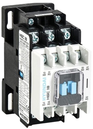 کنتاکتور 18 آمپر - 7.5 کیلووات همراه با بوبین DC - ولتاژ کاری 24/220V DC - تیپ AC3 - یک کنتاکت کمکی باز و بسته - هیوندای - HYUNDAI - مدل HGC-18