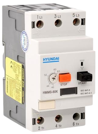 کلید حرارتی (راه انداز موتور) - ولتاژ کاری 690V AC - قدرت قطع 50 کیلو آمپر با رنج جریان 40 _ 63 آمپر - هیوندای - HYUNDAI - مدل HMMS-80K